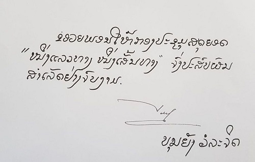 本扬主席签名 “中国的‘一带一路’倡议会为包括老挝在内的各参与国人民带来实实在在的利益,为发展中国家创造了机会。老挝通过‘一带一路’建设改善了基础设施,得到了实惠。”老挝人民革命党中央总书记、国家主席本扬11日在首都万象主席府接受中国媒体联合采访时表示。 中国和老挝是好邻居、好朋友、好同志、…[详细]
