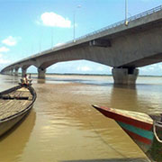 【规模简介】位于孟加拉国巴里萨尔大区马达里普市东郊,路线全长4.96公里。其中,主桥卡兹尔特克大桥长694.16米,宽13.3米。项目建成后,有效缩短了孟西南地区至吉大港的运输距离。自1986年以来,中国政府共帮助孟加拉国建设了七座桥梁,被孟政府和百姓誉为优质“民心项目”,分别被孟方命名为孟中友谊一至七桥。