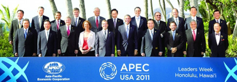 2011年11月,美国夏威夷,第19次APEC峰会 领导人着普通的正装。