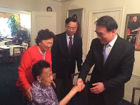 外交部副部长李保东看望顾维钧先生遗孀严幼韵女士 外交部副部长李保东(右)看望顾维钧先生遗孀严幼韵女士 人民网9月26日电 据外交部网站消息,外交部副部长李保东昨天在纽约看望顾维钧先生遗孀严幼韵女士。 李保东转达了杨洁篪国务委员和王毅外长对严幼韵110岁生日的祝贺,介绍了国内发展和外交工作情况。
