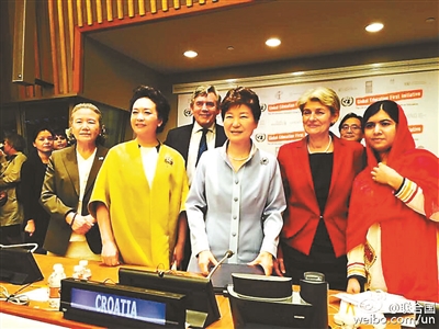 彭丽媛在联大一天两次全英文演讲 谈帮助艾滋孤儿 中国第一夫人彭丽媛(左二)和秘书长夫人柳淳泽、韩国总统朴槿惠等出席“教育第一”高级别会并发言 彭丽媛在联合国相关高级别会议上用英文演讲 人民网9月28日讯 当地时间26日下午,中国国家主席习近平夫人彭丽媛在纽约连续出席联合国有关高级别会议,一天之内发表两场英文演讲,呼吁国际社会支持对女孩的教育以及对妇女、儿童和青少年生命健康的关注。 据联合国官方微博介绍,这两场活动分别是“教育第一促进可持续发展”高级别活动和“每个妇女,每个儿童”高级别活动。