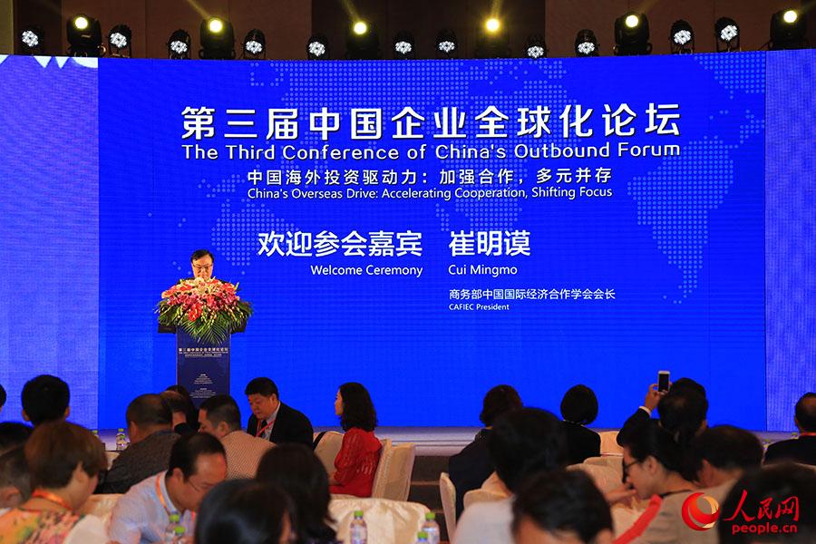 商务部中国国际经济合作学会会长崔明谟致辞。 人民网三亚12月2日电(记者 常红) 由中国与全球化智库(CCG)、三亚市人民政府联合举办的第三届中国企业全球化论坛在海南三亚开幕。商务部中国国际经济合作学会会长崔明谟出席论坛并致辞。崔明谟认为,企业全球化是中国与世界各国经济深度融合实现互利共赢的重要…[详细]