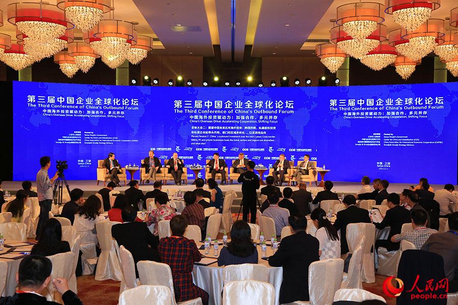 人民网三亚12月3日电 第三届中国企业全球化论坛2日至3日在海南三亚举行。本届论坛主题为“中国海外投资驱动力:加强合作,多元并存”,由中国与全球化智库(CCG)、商务部中国国际经济合作学会、三亚市人民政府联合举办。在3日举行的主题为“中国企业在‘一带一路’中的机遇与挑战”全体大会三上,国务院参事室参…[详细]