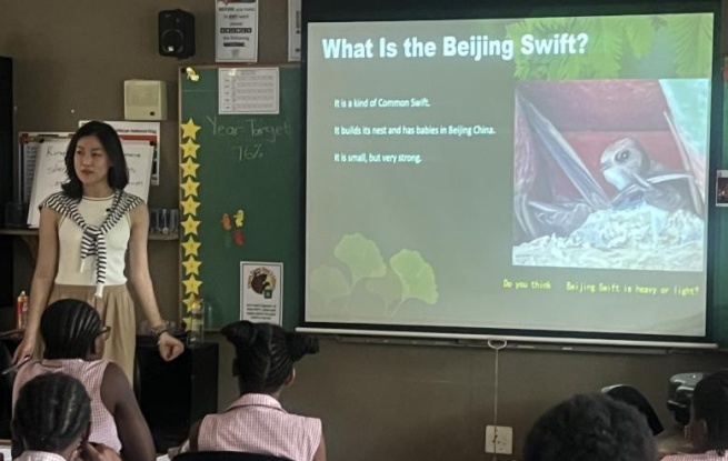 追寻北京雨燕 近日,上海杉达学院的南非中国文化和国际教育交流中心孔子课堂(以下简称“南非中国文化中心孔子课堂”)携手“追寻北京雨燕”纪录片制作团队在比勒陀利亚沃特卢夫小学中文班举办了一场别开生面的中非人文交流活动。活动以北京雨燕的故事为纽带,将来自中国和南非的学生联系在一起。现场有中南师生及志愿者等49人参与,互动热烈、洋溢着中南友好的欢乐氛围。
