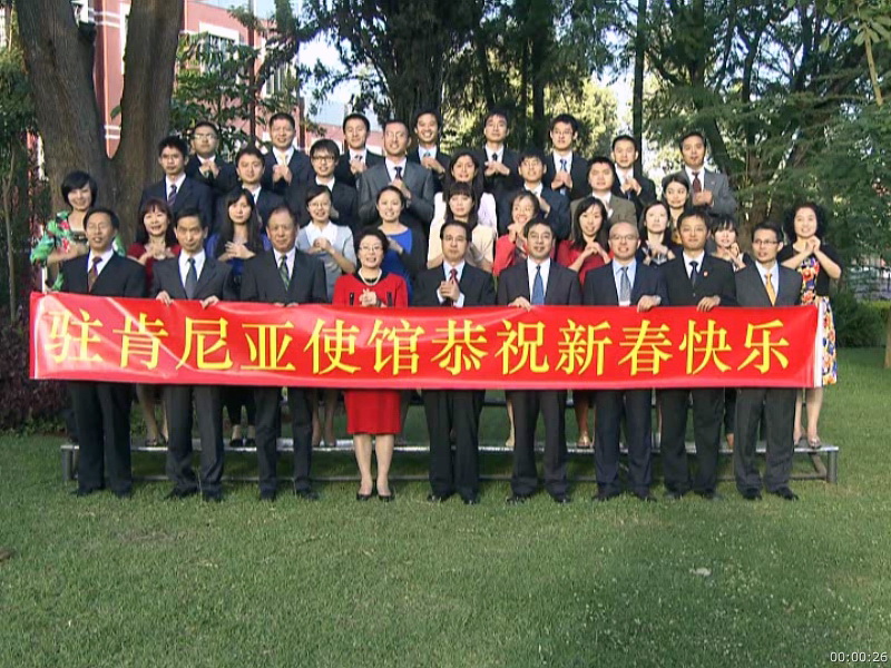 中国驻肯尼亚大使刘光源携馆员向祖国人民拜年