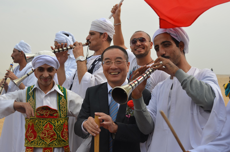 中国驻埃及大使宋爱国携馆员向祖国人民拜年【2】