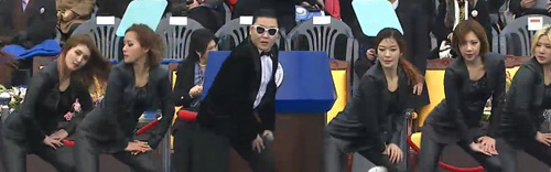 PSY助阵朴槿惠就职现场(图片来自韩国媒体视频截图)
