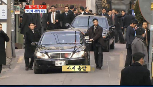 2月25日09:21 人民网驻韩国记者张悦报道 组图:韩国总统朴槿惠赶赴就职现场
