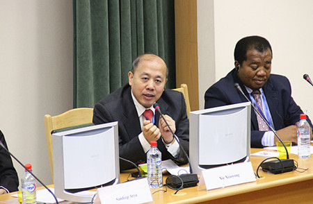 中国驻俄罗斯大使馆公使谢小用在开幕式上致辞。(人民网记者 刘旭摄)