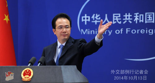 2014年10月13日外交部发言人洪磊主持例行记者会。(外交部网站图片)