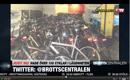人民网斯德哥尔摩11月18日电 据瑞典《午报》消息:警察在瓦斯泰纳市的一位七旬老人家里找到上百辆被偷窃的自行车。好几辆拖车才把这些自行车运走,现在警察正在寻找车主。