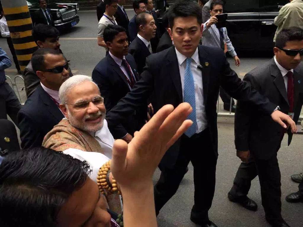 莫迪一行离开大兴善寺时,看到热情的西安市民,他特意让司机停车,他下车后向热情的西安市民招手致意。这一幕令不少西安市民回味不已。
