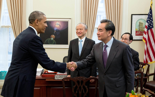 当地时间2月24日,美国总统奥巴马在华盛顿白宫会见对王毅外长。