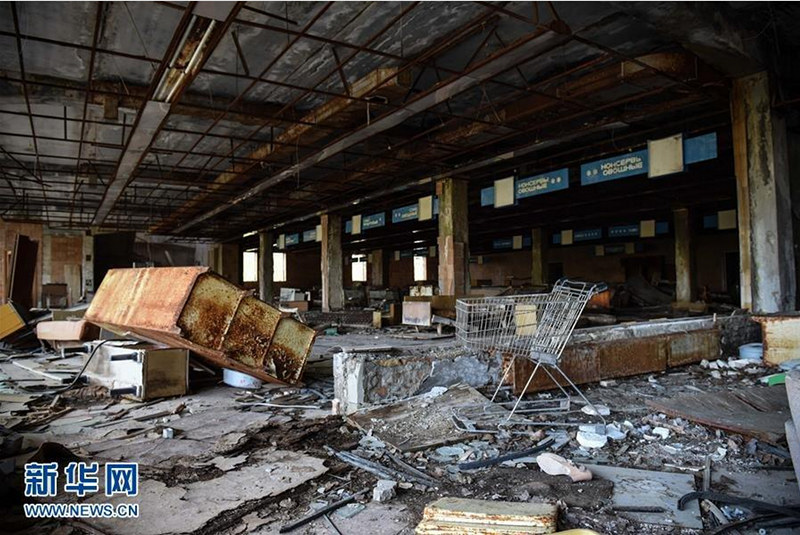 乌克兰北部切尔诺贝利核电站附近的普里皮亚季市拍摄的废弃超市。普里皮亚季市建于1970年,目前已是一座“鬼城”。