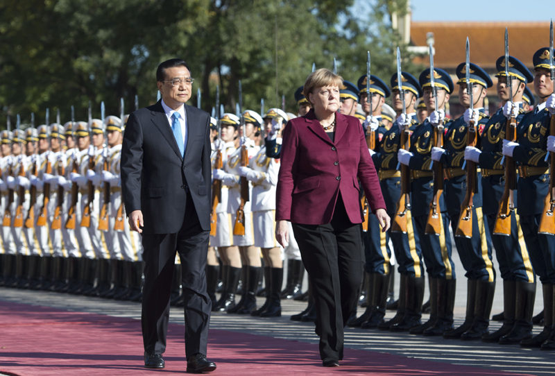 2015年10月29日,李克强在人民大会堂东门外广场为德国总理默克尔举行欢迎仪式。2016年6月12日,默克尔将开启第9次访华之行。