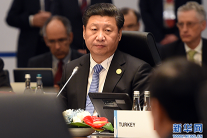 2015年11月15日,二十国集团领导人第十次峰会在土耳其安塔利亚举行。国家主席习近平出席并发表题为《创新增长路径共享发展成果》的重要讲话。这是习近平出席第一阶段会议。新华社记者李学仁摄
