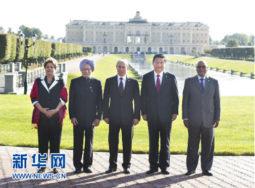 2013年9月5日,金砖国家领导人非正式会晤在俄罗斯圣彼得堡举行,国家主席习近平出席,同巴西总统罗塞夫、俄罗斯总统普京、印度总理辛格、南非总统祖马就金砖国家合作以及重大国际和地区问题交换意见、协调立场。习近平强调,面对各种风险和挑战,金砖国家要凝聚在重大问题上的共识,加强团结合作。