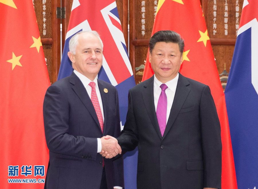 9月4日,国家主席习近平在杭州会见在华出席二十国集团领导人杭州峰会的澳大利亚总理特恩布尔。 新华社记者 丁林 摄