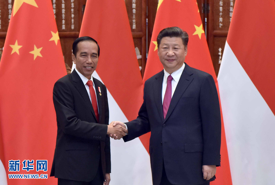 9月2日,国家主席习近平在杭州会见前来出席二十国集团领导人杭州峰会的印度尼西亚总统佐科。 新华社记者张铎摄