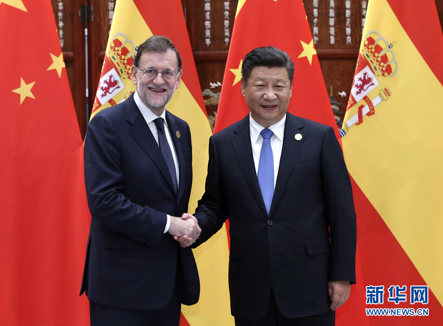 9月5日,国家主席习近平在杭州会见西班牙首相拉霍伊。新华社记者庞兴雷摄