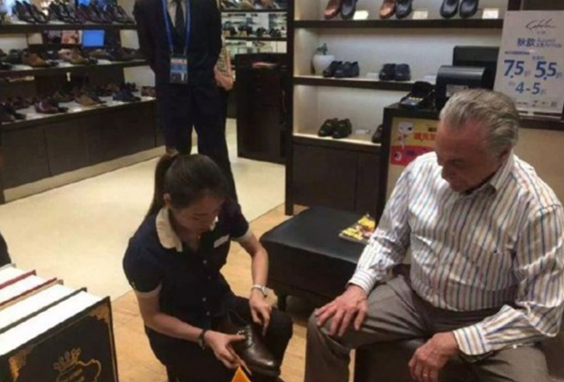 9月3日下午,来华出席G20杭州峰会的巴西总统特梅尔特地抽出时间“逛”商场。(视频截图)