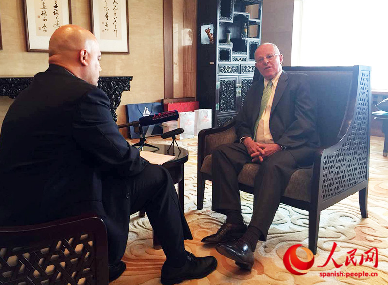 秘鲁总统佩德罗·巴勃罗·库琴斯基(右)接受人民网记者专访。 刘旭霞摄