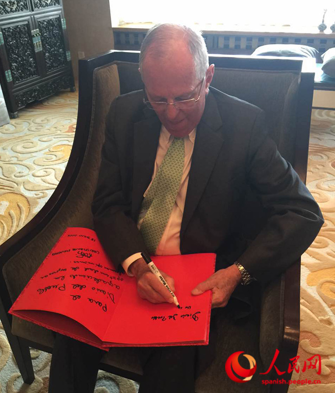秘鲁总统佩德罗·巴勃罗·库琴斯基为人民网题词。 刘旭霞摄