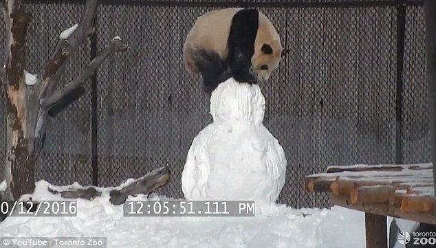 多伦多迎降雪 动物园为大熊猫堆雪人 【3】