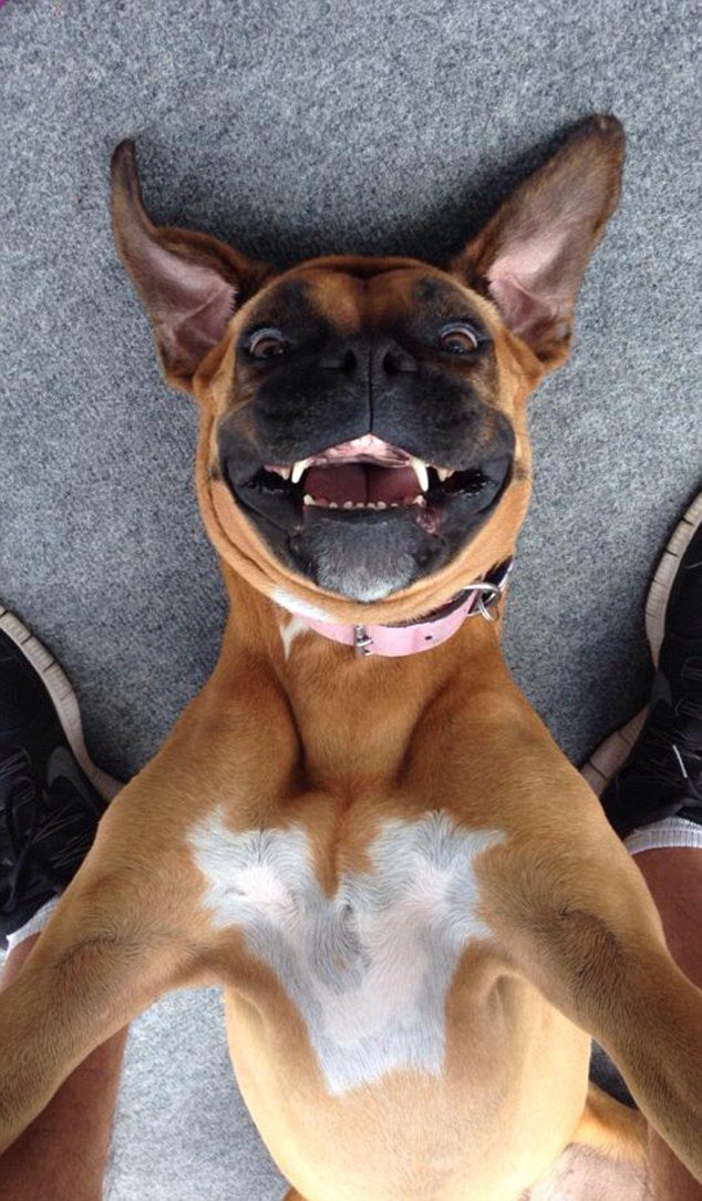 不同于喵星人的高冷,汪星人自拍起来常常抑制不住笑容。