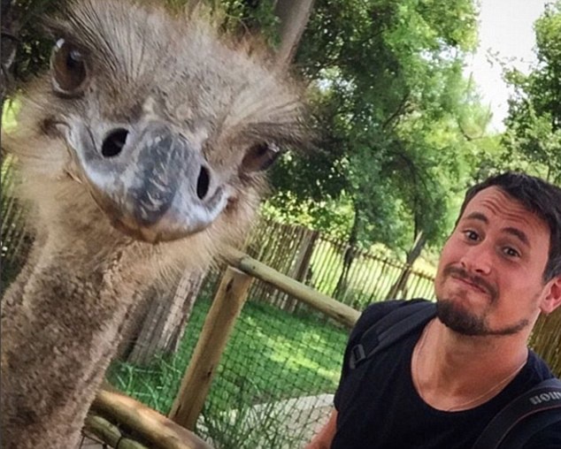 被游客强行纳入自拍镜头,这只鸵鸟好像不大高兴。