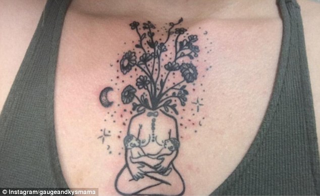 这位骄傲的母亲在胸前纹了一颗“母亲树”,描绘她正在喂养两个儿子的情形。