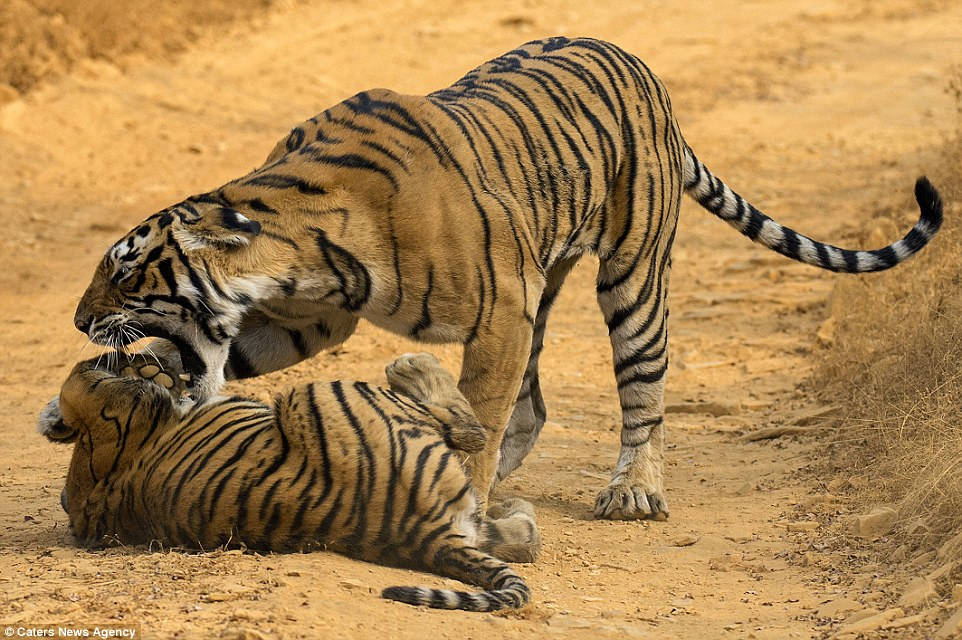 虎妈上线:印度一保护区上演虎妈训子(组图)【9】