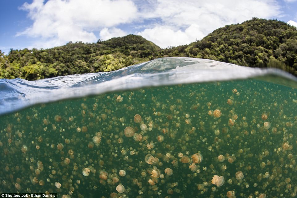 位于帕劳群岛的水母湖有着100多万只金色无刺水母,几百年前,该水母湖有一个入海口,后来海平面下降,水母无法游出,便在此繁殖。