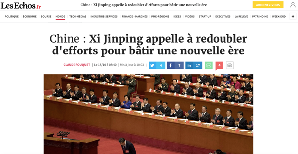 法国《回声报》称,中国将加倍努力 迎接新时代。