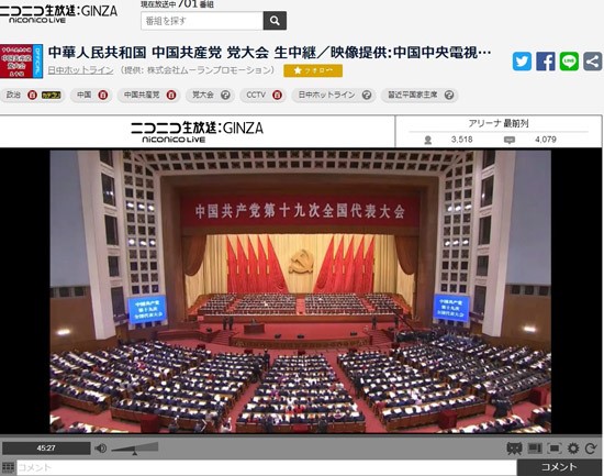 中国共产党第十九次全国代表大会10月18日在北京开幕,引发了日本各大媒体的高度关注,日本最大的视频网站niconico对此进行了直播, 并配有同声传译,便于日本网友观看。