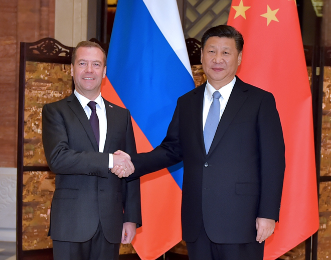 2015年5月,习近平在出席俄罗斯纪念卫国战争胜利70周年庆典期间会见梅德韦杰夫。习近平表示,中俄两国今年分别举办纪念抗日战争和反法西斯战争胜利70周年活动,目的是总结历史,缅怀先烈,维护和平,警示未来。梅德韦杰夫表示,忘记历史就意味着背叛。俄中两个伟大民族为战胜法西斯主义和军国主义作出了杰出贡献。