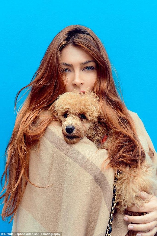 海德公园里模特亚历山德拉·帕拉特和她的迷你贵宾犬索菲亚的自拍。
