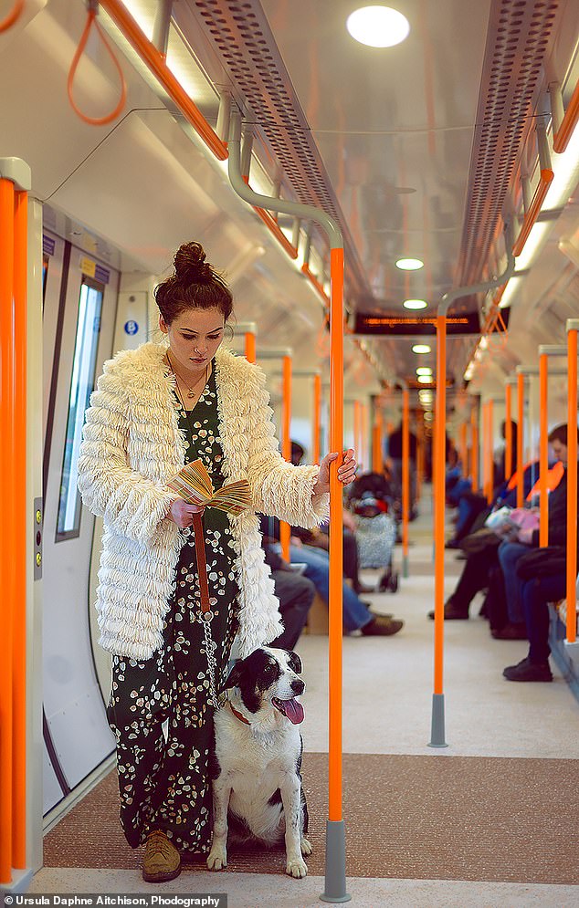 伦敦东部的地铁上,吉玛·穆尔和她童年最好的朋友边境牧羊犬德尔福。