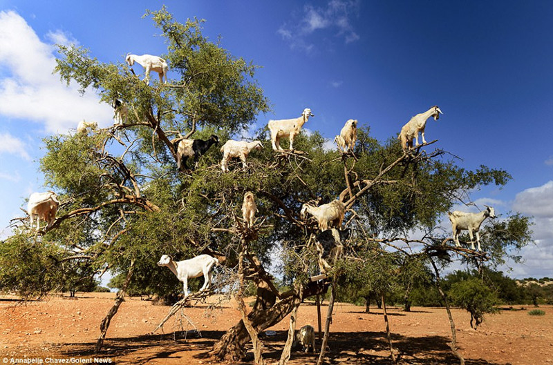 一棵树远不止被一只山羊惦记着。通常情况下很多山羊会朝着一棵树奔去,树的枝干上全是山羊的身影。