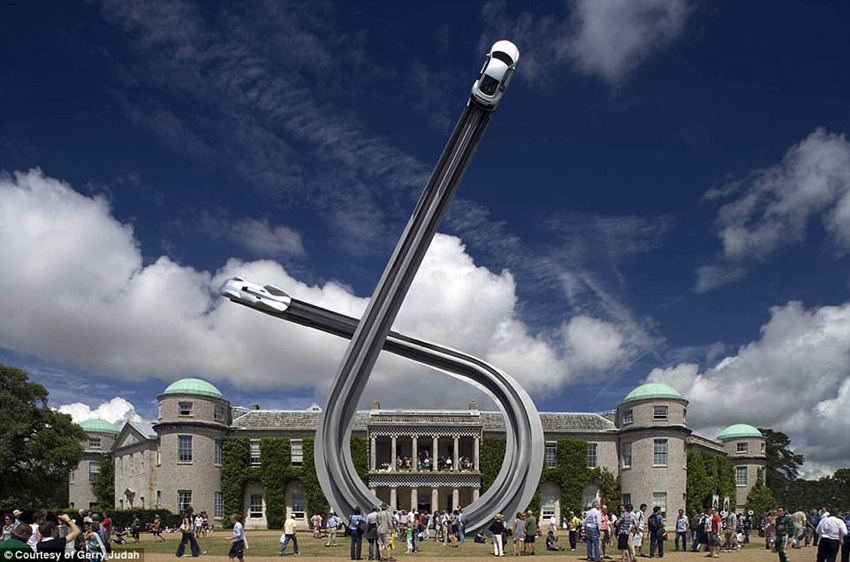 英国艺术家格里·犹大创造了一系列反重力作品,图中的汽车主题建筑是为2009年的古德伍德速度节创作的。