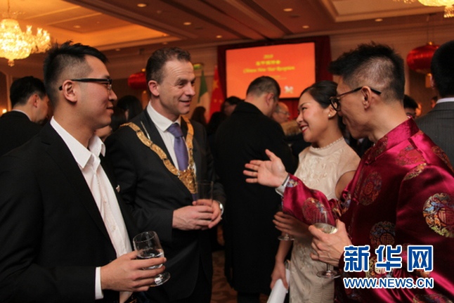 2月8日, 在爱尔兰首都都柏林, 中爱嘉宾在中国驻爱尔兰使馆举办的春节招待会上交谈。新华网发(张琪摄)