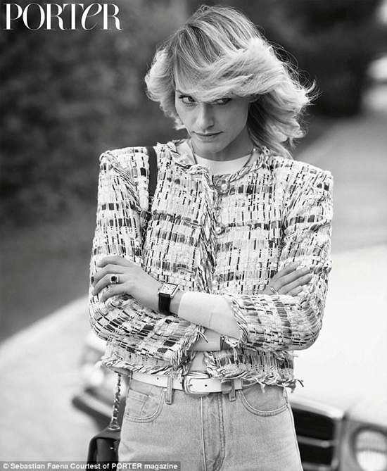 模特安布尔·瓦莱塔在《PORTER》杂志的春季版中模仿戴安娜王妃的装扮。