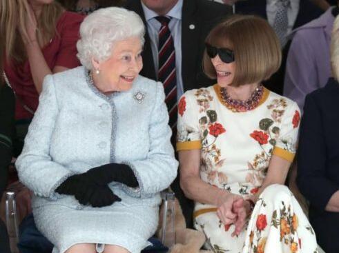 91岁英国女王首次参与伦敦时装周 与美国时尚女王并肩而坐