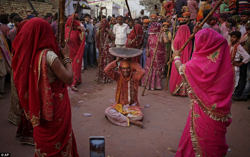 在被用棍棒殴打之后,他们中有几个人被迫穿上女装起舞。
