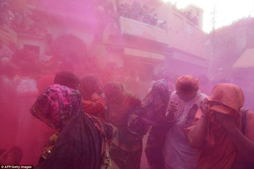 狂欢者们用衣服捂住嘴巴和眼睛。
