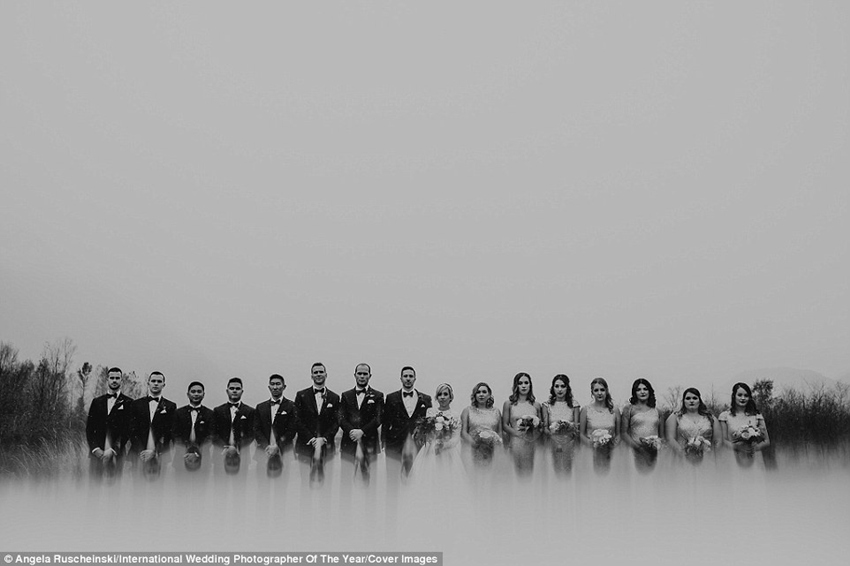 浓雾和雪中的婚礼照片,拍摄于加拿大。