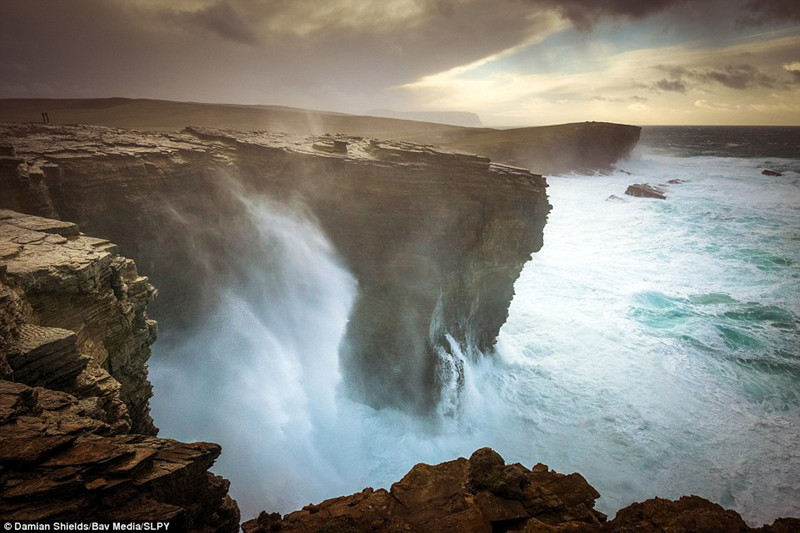 在达米安·谢尔兹(Damian Shields)的作品里,海浪拍击着苏格兰奥克尼的一处峭壁,天空也明显被分割成黑暗,乌云和蓝天三部分。整张照片带给人强烈的视觉冲击。