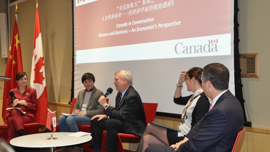 人民网北京3月8日电 (徐祥丽)三八国际妇女节前夜,加拿大驻华使馆举办“对话加拿大——女性与商业”活动,加拿大驻华大使麦家廉邀请加拿大咨议局高级研究员、经济学家格兰·霍吉森、联合国妇女署驻华办事处主任汤竹丽、智联招聘CEO郭盛等中加经济学家、企业界人士,共同探讨女性在商业和社会经济中的地位、女性平权等话题。