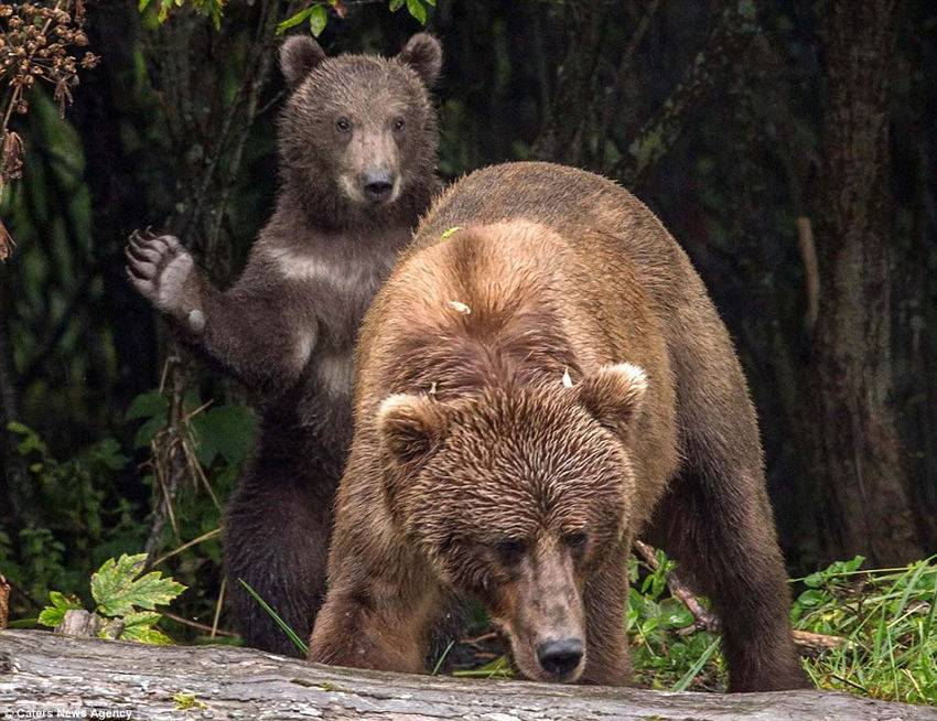 阿拉斯加科菲亚克岛,这只顽皮的小熊似乎在恶作剧。