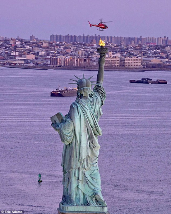 摄影师埃里克·亚当斯(Eric Adams)碰巧拍到了直升机坠毁几分钟前飞过自由女神的照片。